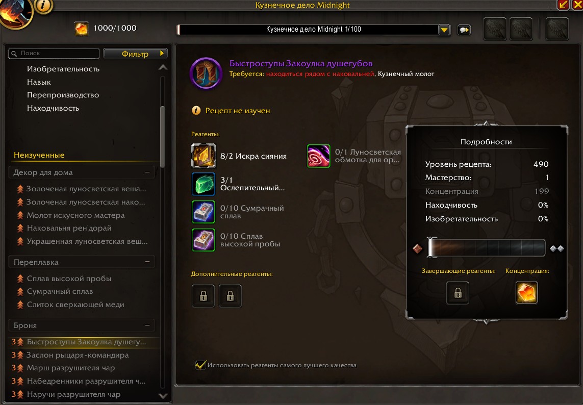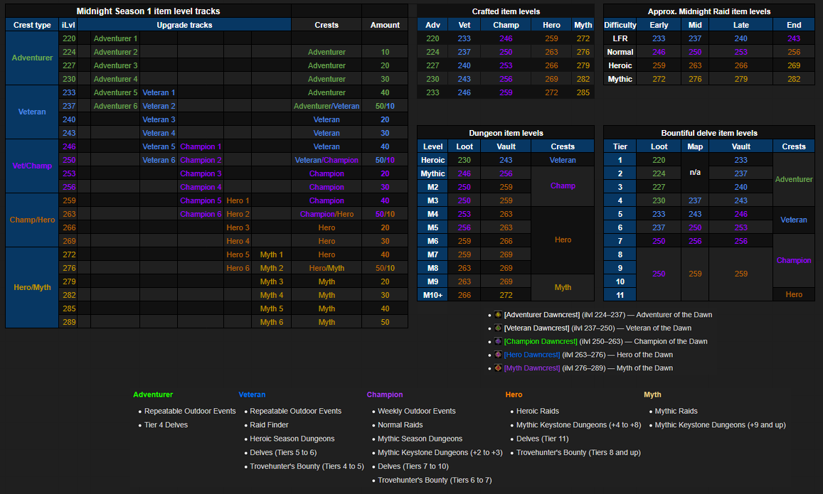 Кратко и быстро: Крафт практически не изменился с The War Within. К старту героического рейда нужно будет сделать несколько крафтов 246 уровня, а для альтов – крафт оружия 272 уровня. К старту эпохального рейда можно будет сделать крафт 285 уровня. Однако не спешите с крафтом без предварительного уведомления офицеров вашей гильдии.